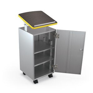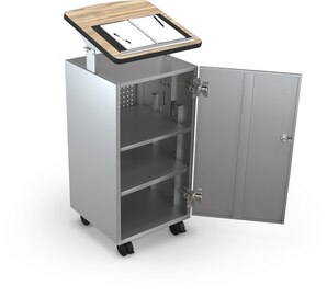The innovative and stylish Avid Podium is a stylish and functional piece for any instructional or audio visual environment. Tilted top (19.8″W x 20.8″D) features 6″ of height adjustment, locks into place, and includes a paper stop. The 1″ thick HPL top is available in a variety of stock laminate options, or can be customized.