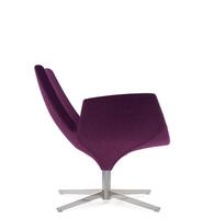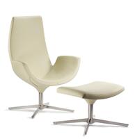Cheer is a lounge seating line that is meant to inspire reception areas and contract areas. It is characterized by joyful and contemporary lines. It is the ideal solution for spaces where design, comfort and functionality merge. A chair with high and low backrest options and a matching ottoman. Cold-foamed polyurethane shell, upholstered in leather or fabric to your selection on a chromium-plated steel four-star base.