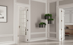 Greencloud planters are available as round standing or hanging flower pots in painted steel and aluminum. Includes molded water saucer and three round flower pots.