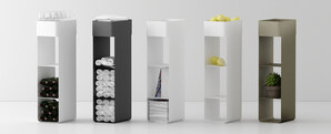 Painted steel utility cart with one fixed shelf and methacrylate top. Comes in three different heights, with or without casters. Simple, elegant design.