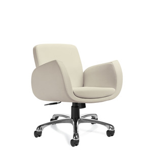 Kate is a contemporary, yet retro seating family featuring sculpted seat and back cushions and fully upholstered closed arms. The series includes a tilter armchair, swivel armchair, four-legged armchair, and ottoman. Kate is available in fabric, vinyl, and leather.