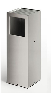 RIGA is a family of waste receptacles offering various size capacities and that includes a combination ash/trash unit as well as a matching umbrella stand. Featuring stainless steel bodies with a painted silver removable top and integrated bag ring.
