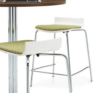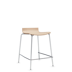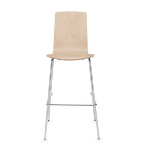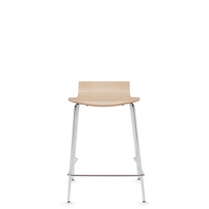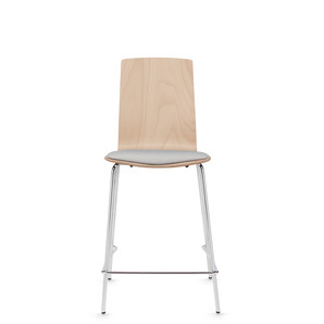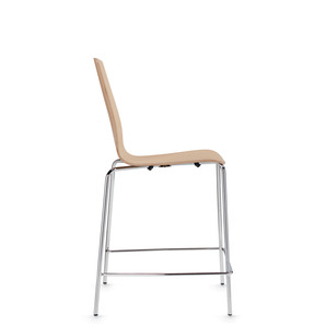 Sas features rich grains and gently molded curves that invite people to sit and gather for casual conversations. The collection includes side chairs and stools with or without an upholstered seat. The sculpted one-piece shell is made from high quality veneer to ensure lasting comfort.