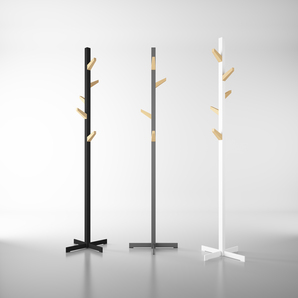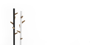 Second-Tree is a painted steel coat tree available in Black, Forge Grey or White with five oak wood hooks.