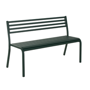 An indoor/outdoor steel bench with e-coated powder-coat finish.