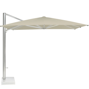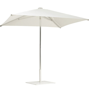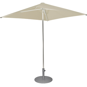 Outdoor umbrella with anodized aluminum pole, ribs, struts, hub and finial. Simple to open via manual lift; self locking. Awning commercial grade fabric canopy.