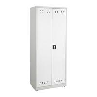 The 72"H Steel Storage Cabinet is a metal storage cabinet with four adjustable shelves. All shelves adjust in 1" increments and rated up to 250 lbs. Featuring a heavy-gauge steel uni-body construction, the storage cabinet is furnished with a recessed locking door handle with three-point locking design and adjustable leveling glides. A two-tone, gray powder coat finish offer durability.