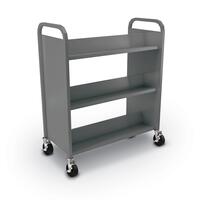 Add durable and easily maneuverable book storage and transport to your library or media center with the Tallo Mobile Metal Book Truck. Each truck features two shelves with angled storage for keeping books secure and a flat bottom shelf for additional storage.