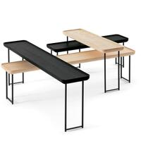 Torei is inspired by the small dimensions and flexible function of a serving tray. These long, narrow side tables can be grouped together for a contemporary coffee table aesthetic or used alone as a side table for a couch, or in a social space.