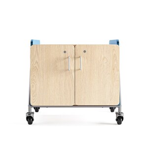 Whiffle Mobile Storage units are constructed of 3⁄4” thick particle board with thermal-fused laminate (TFL) on both sides. The top work surface is made with high pressure laminate on both sides for added strength. Constructed with matching 2mm PVC edge banding on side panels and top worksurface, and 1mm PVC edge banding on remaining parts.